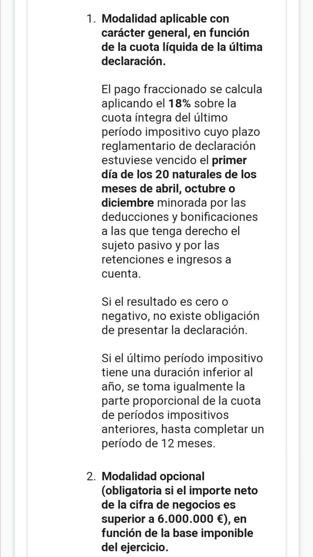 Creo que lo que se preguntaba era cuándo es obligatorio realizar los pagos fraccionados del IS con el método de la base. En lo que has adjuntado ya te indica que es obligatorio a partir de 6.000.000.