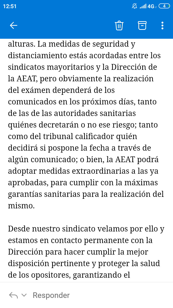 Murciaquehermosaeres wrote: Me contestaron del sindicato, obviamente se baraja tener que implementar medidas adicionales, aplazamiento o lo que sea necesario en cualquier momento ya sea por recomendaciones de sanidad o por consideración del tribunal.