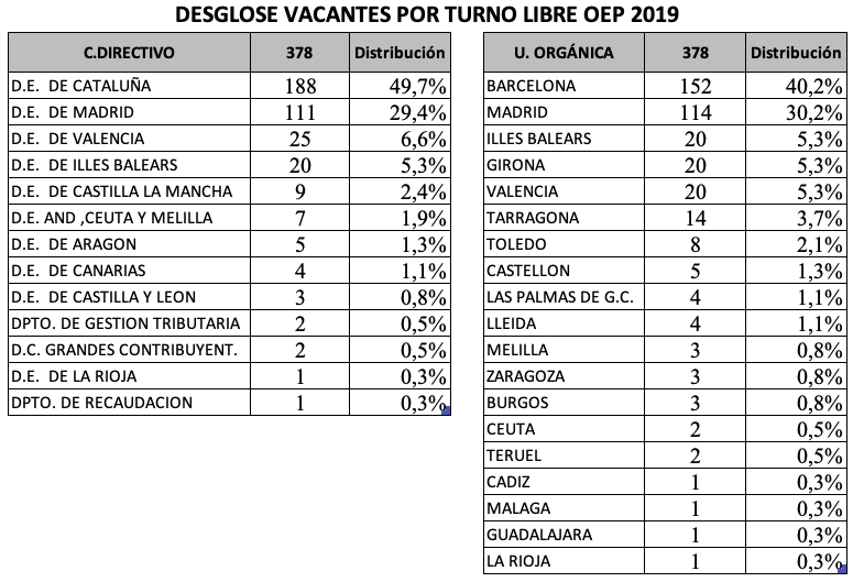 Las tablas están ordenadas de más plazas a menos de la OEP2019.