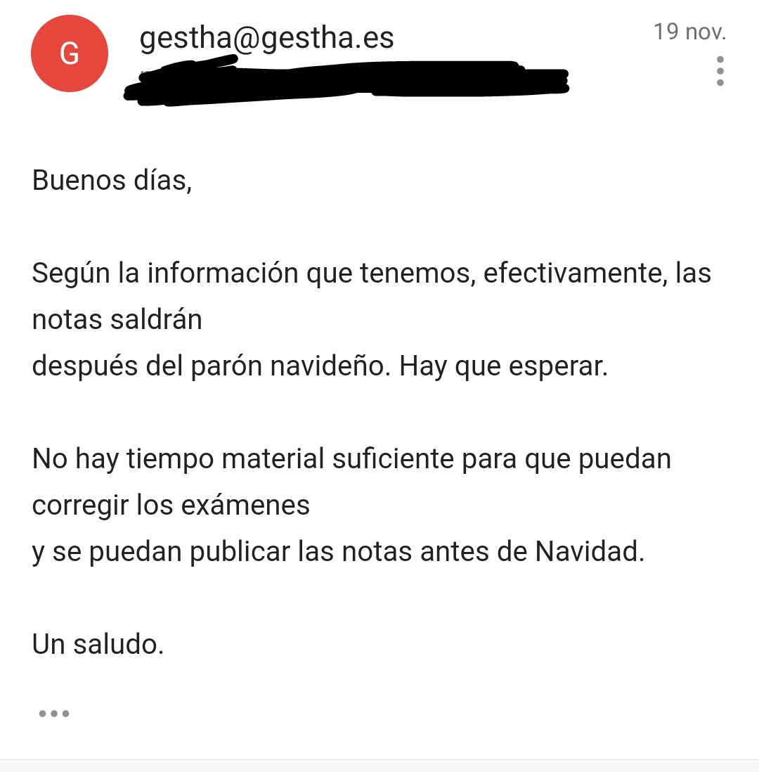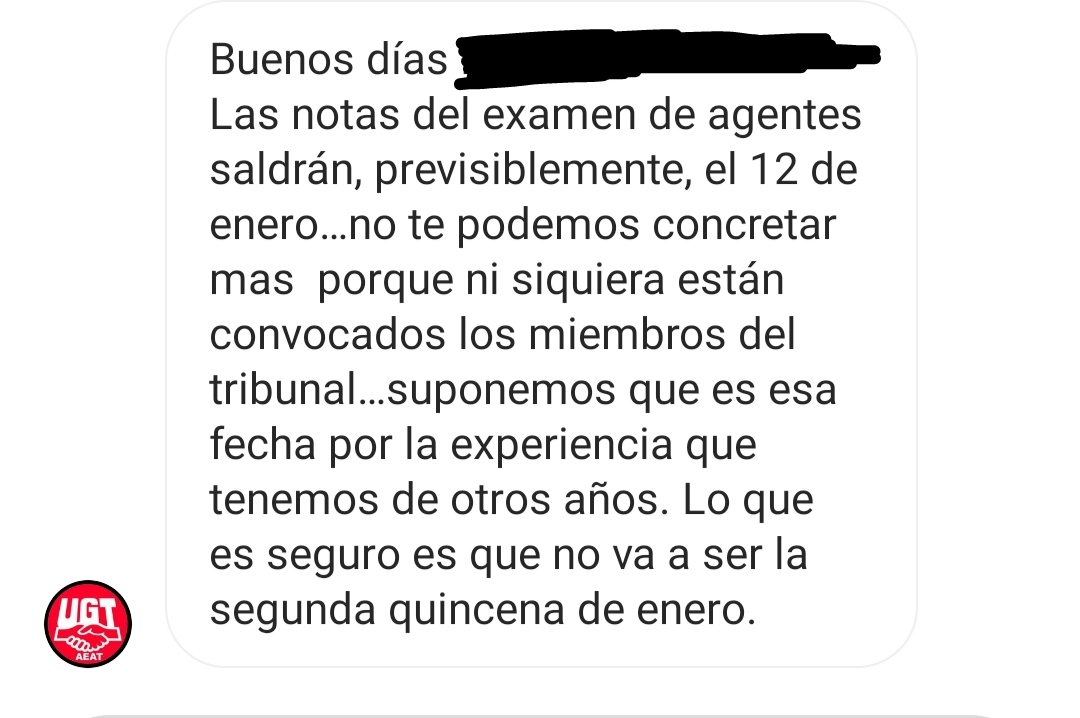 Esta mañana he llamado a UGT y me comentaban que se preveían las notas para mediados de diciembre. Sin embargo, otros sindicatos afirman que hasta después de Reyes o incluso el 30 de enero, nada.