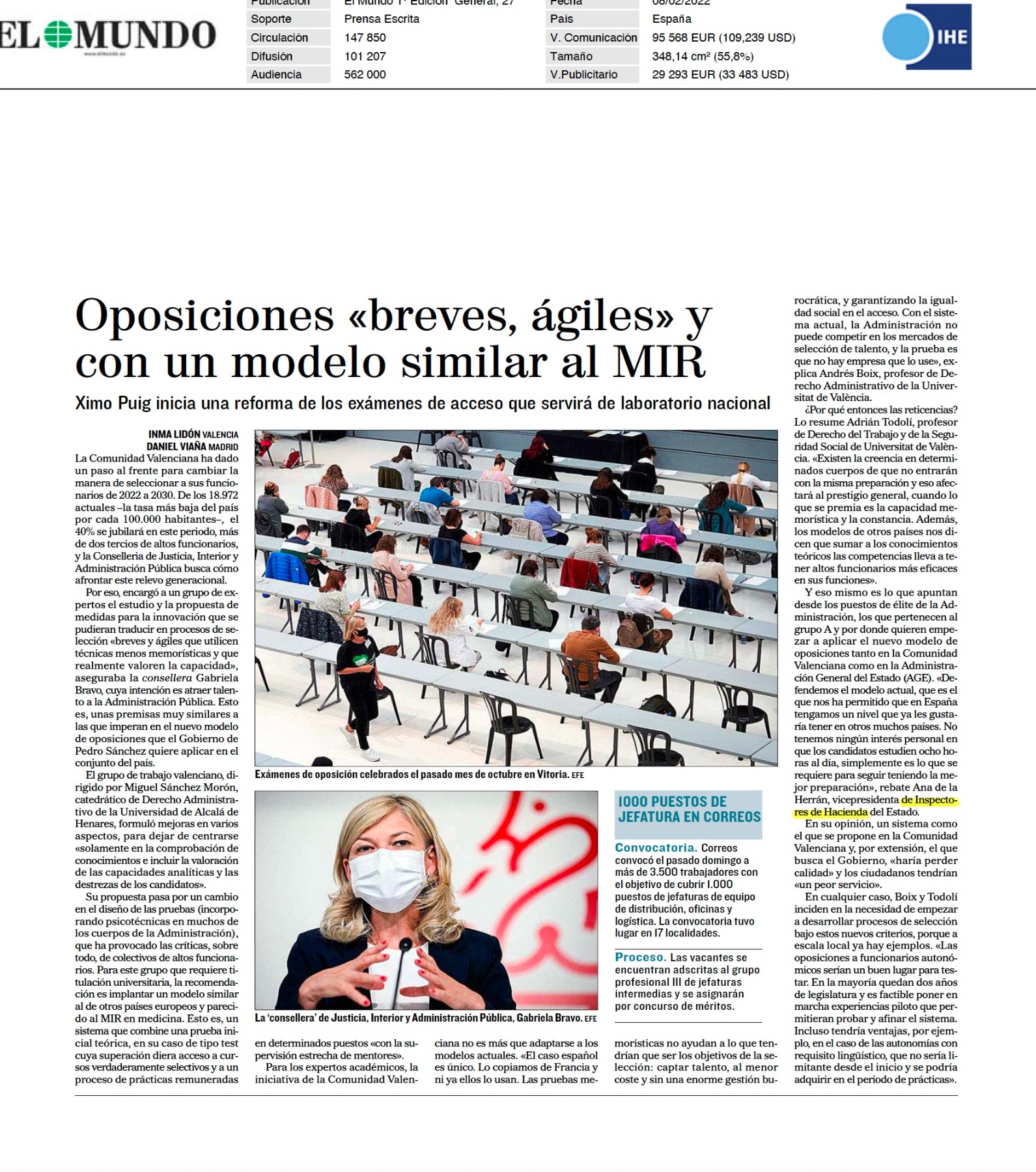 El laboratorio valenciano de las nuevas oposiciones para funcionario: "Breves, ágiles" y con un modelo similar al MIR
