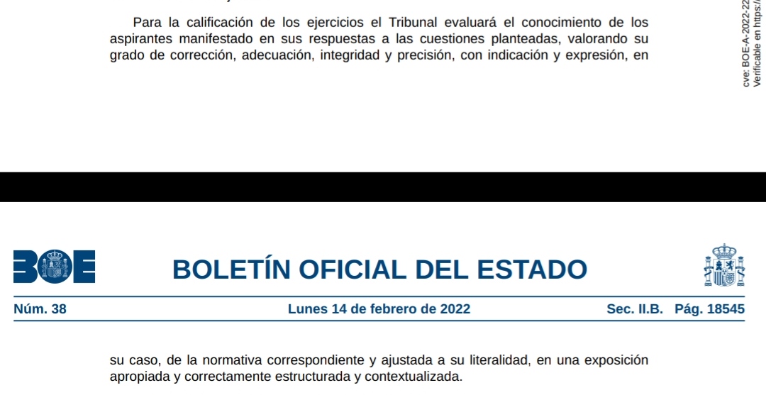 La gente habla de literalidad porque en los criterios de corrección de la propia convocatoria así viene expuesto.