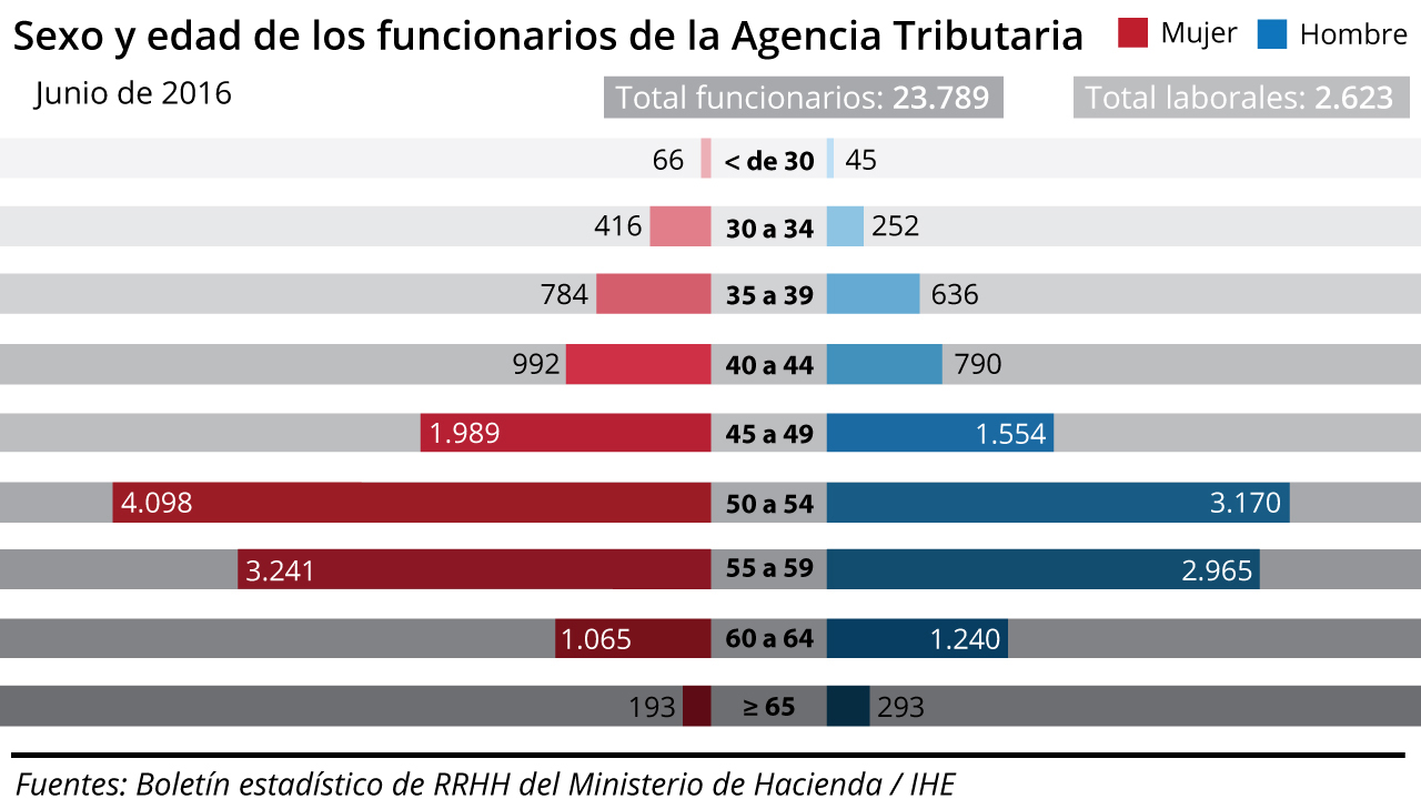 Solo el 16,7% de los funcionarios de la AEAT tienen menos de 45 años.