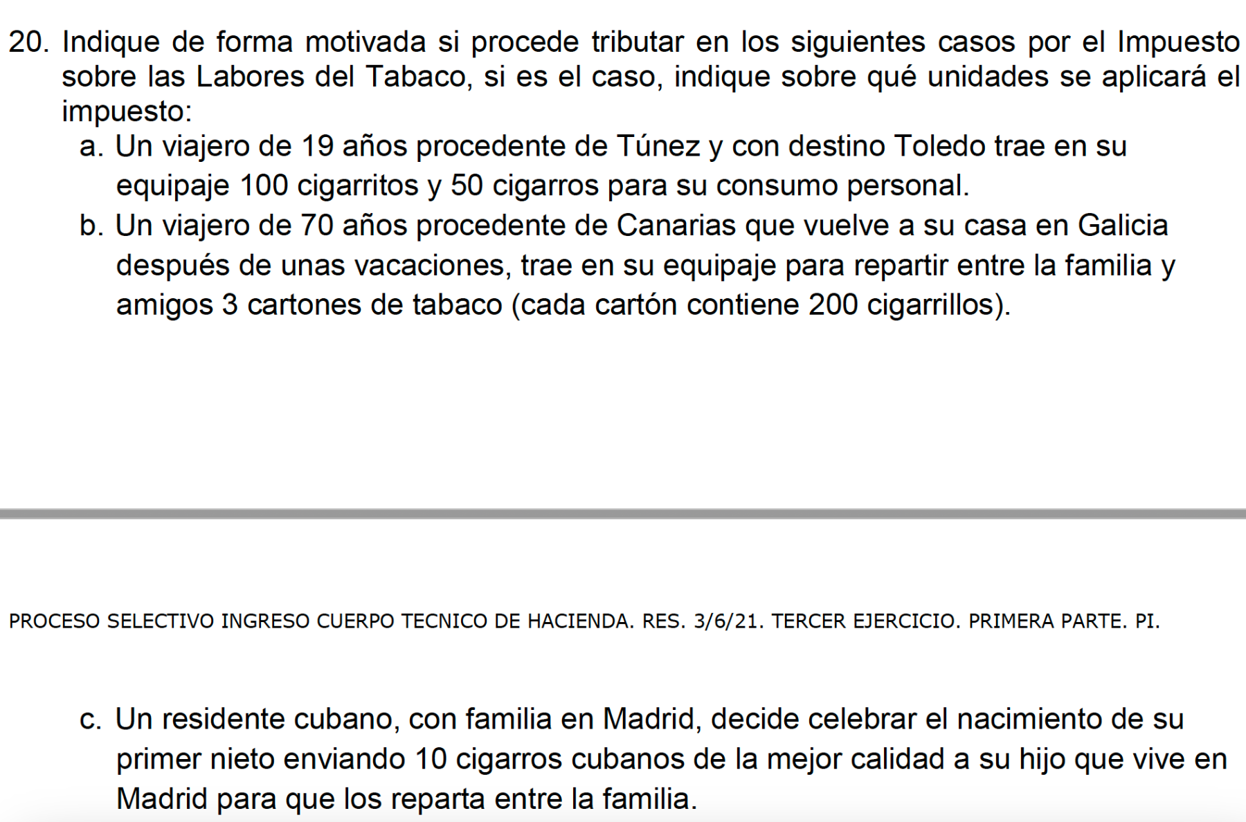 Me genera duda el supuesto a) porque la ley limita la importación de las labores en el caso de ser conducidas por mayores de 17 años a 100 cigarritos o 50 cigarros.
