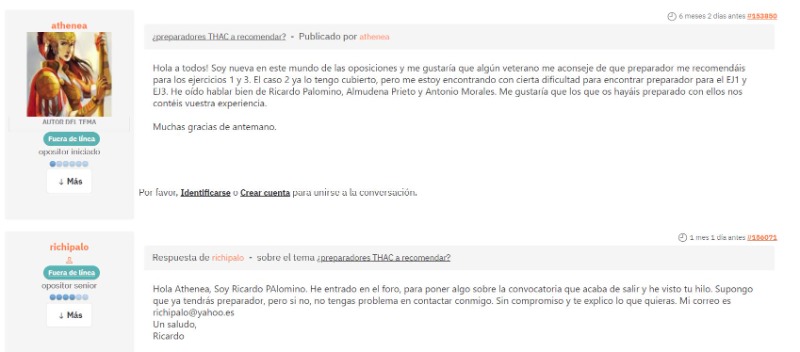 Hola a todos! Me paso por aquí para comentaros mi experiencia en relación a la preparación de las oposiciones a técnico. Gracias a las muchisimas recomendaciones de este foro me puse en contacto con Ricardo Palomino (richipalo@yahoo.es). El me comentó que en ese momento estaba muy atareado pero se ofreció a comenzar mi preparación, pese a no conocerme. En estos cinco meses he podido descubrir que los buenos comentarios de sus alumnos son fruto de su gran calidad como preparador, y sobretodo como persona. Siempre responde las dudas de inmediato y además de ser un gran tutor a nivel académico, es un gran motivador a nivel personal, dándome siempre los mejores mensajes de ánimo cuando más lo necesito. A los que comenceis este duro y largo camino, os aconsejo que contactéis con Ricardo, no os arrepentiréis.