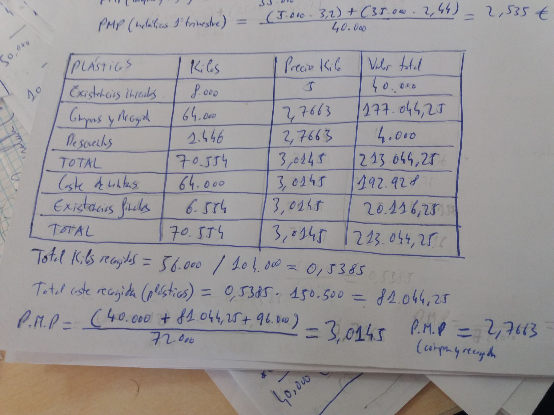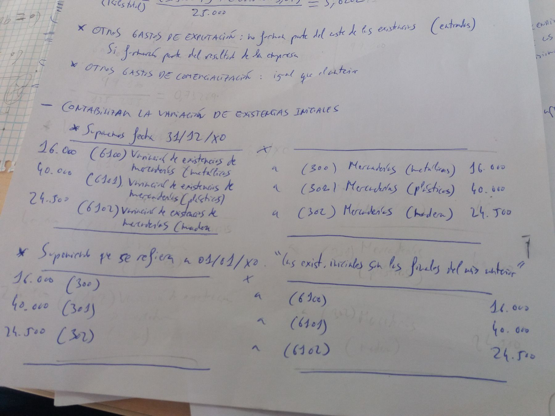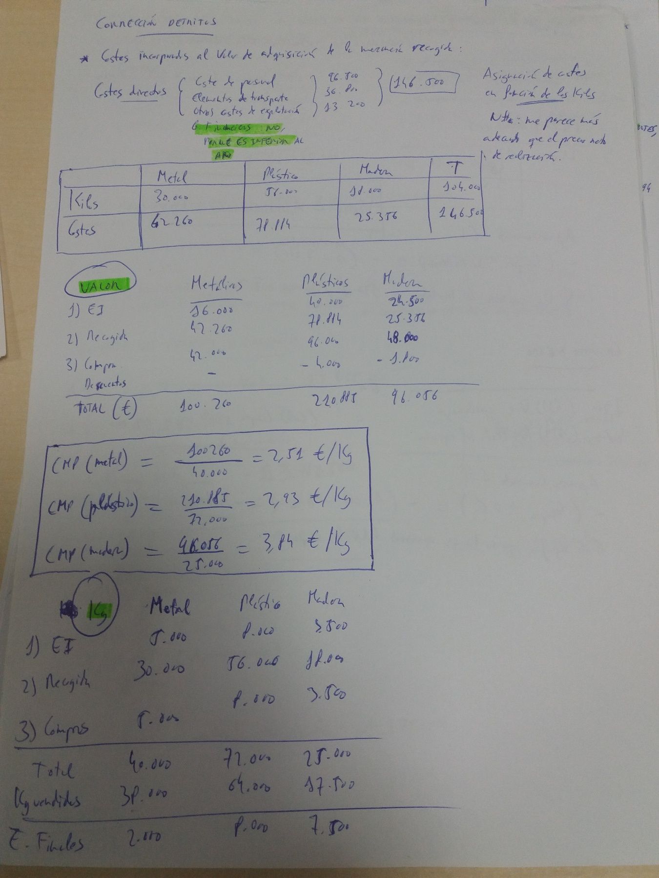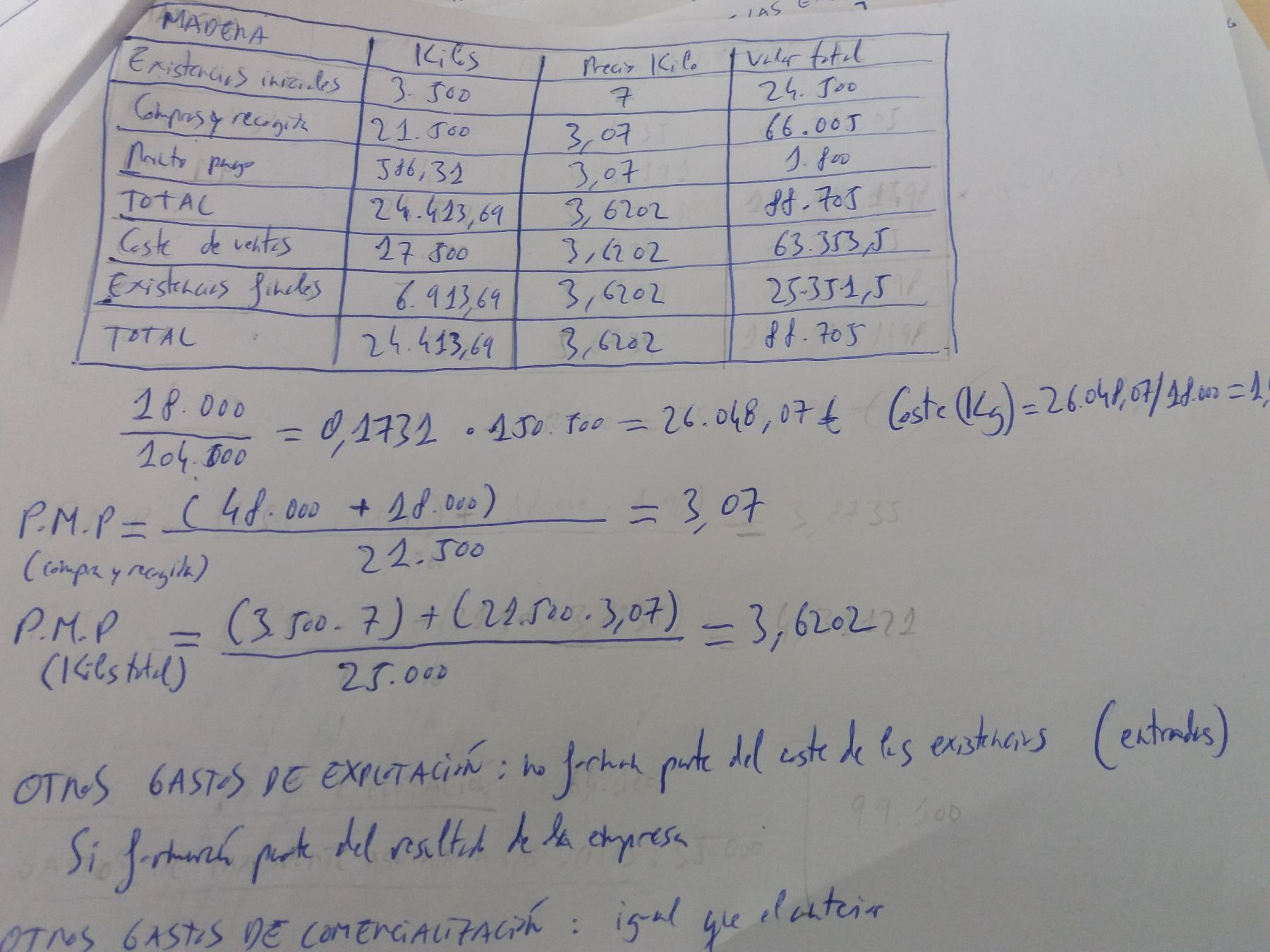 El resto de gasto de explotación (35000, 22100, 7500), exceptuando los costes de almacenamiento y los gastos de comercialización (solo por el transporte asociado a las ventas, ¿Forman parte del precio de adquisición de las existencias?