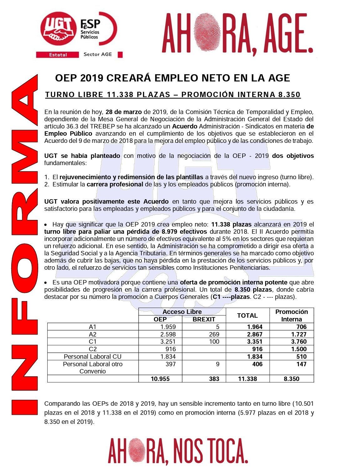 Mejor que salgan antes de las elecciones, siempre son más suculentas en año electoral y con la inestabilidad que puede haber después de las elecciones (que nadie sume) es mejor que salga ahora la Oep para toda la AGE .
