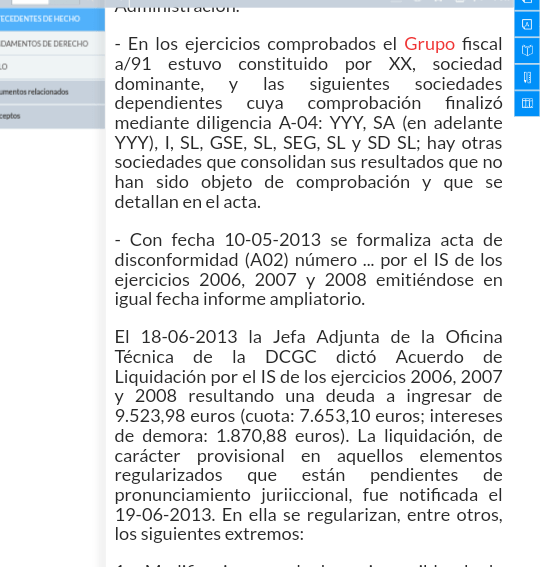 Betu wrote: La coletilla "que esté siendo objeto de actuación inspectora" no es para nada redundante, pues se puede inspeccionar a una sociedad del grupo SIN inspeccionar el grupo, siempre que sea dependiente.