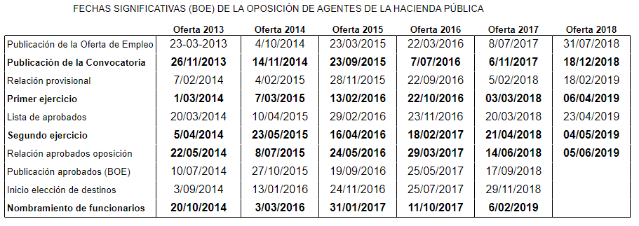 En las últimas ofertas de empleo la convocatoria ha sido en noviembre, el primer examen en febrero o marzo y el segundo en abril o mayo.