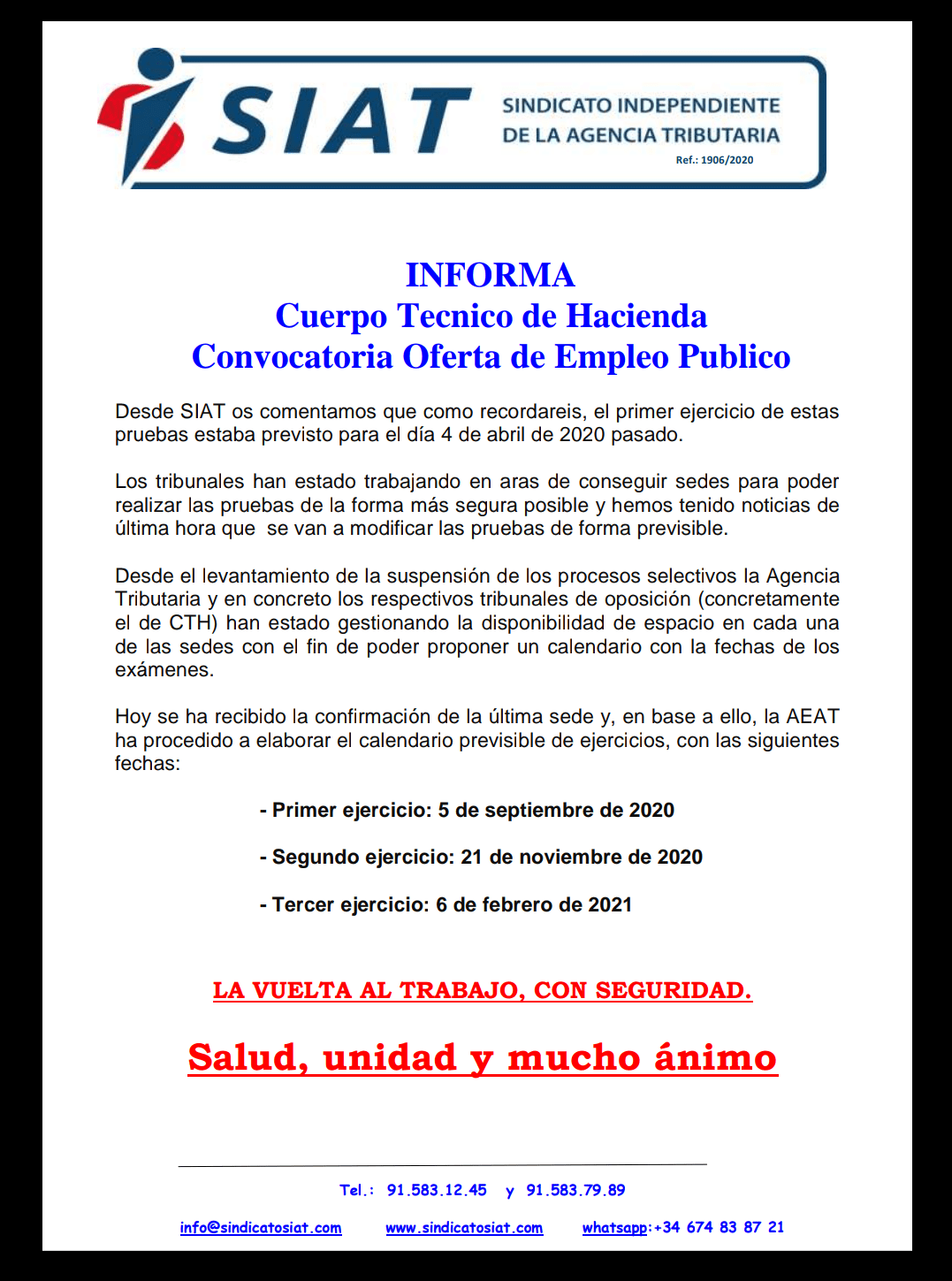 Opo2017-30 wrote: Efectivamente la gente de TAC a día 19 de Junio seguimos en el punto de partida. No sabemos si la fecha será en Julio o en Septiembre y os aseguro que no es nada agradable. Al menos vosotros sabes que sobre el 19 o por ahí puede estar vuestro examen.